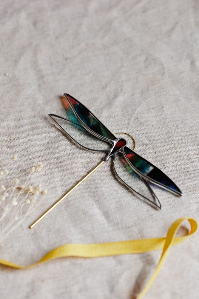 These beautiful handmade stained glass dragonflies by Alexa Braud look beautiful displayed in a window where the light can highlight their delicacy. As each one is individually handcrafted from handblown glass, there may be variation in terms of colours and patterns of the glass.