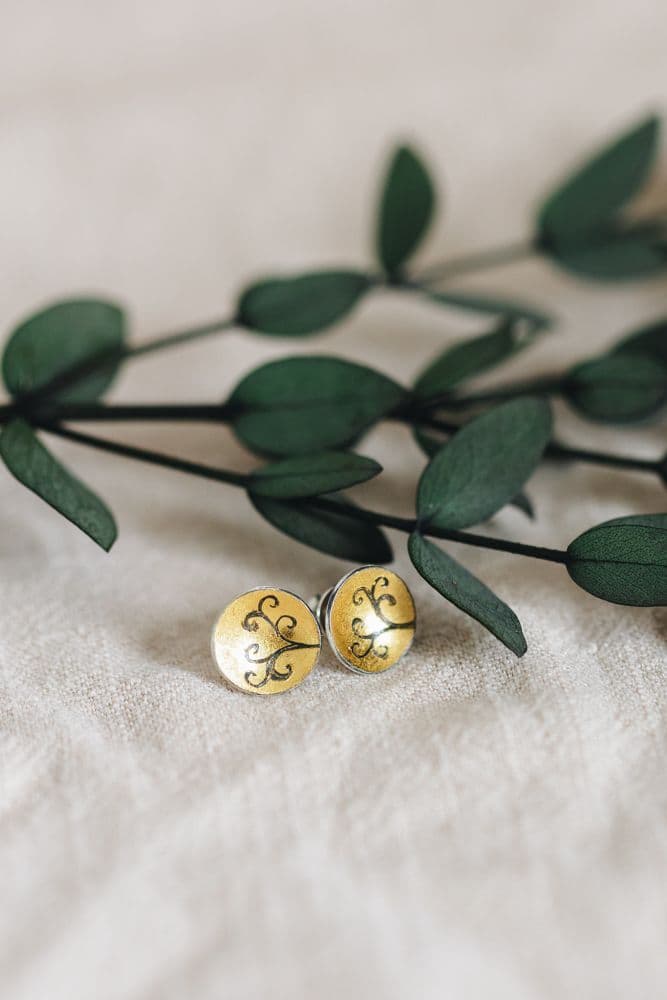 These rushing wind stud earrings are individually made by hand from sheet silver and 24ct gold leaf for detailing. You can view all sterling silver jewellery by Becky Crow here.