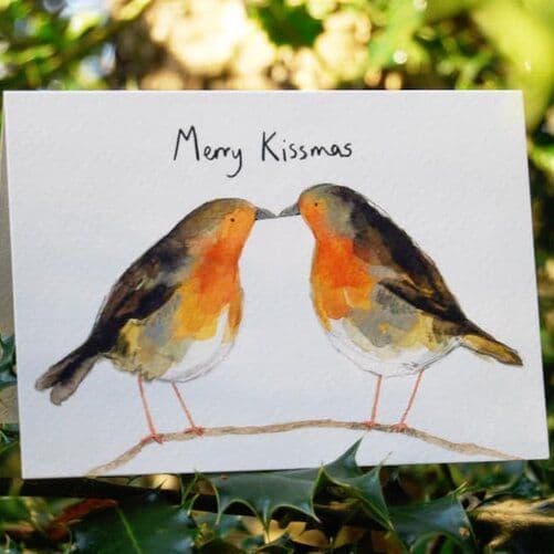 This cute card features Gemma O'Neill's illustration of a two robins the message 'Have a Merry Kissmas'. The original illustration was rendered using gouache, pencil and crayons. The Fresco Gesso card captures the look and feel of the original illustration beautifully. Each card comes with a brown Kraft envelope, wrapped in cellophane. You can view all cards and artwork by Gemma O'Neill here.