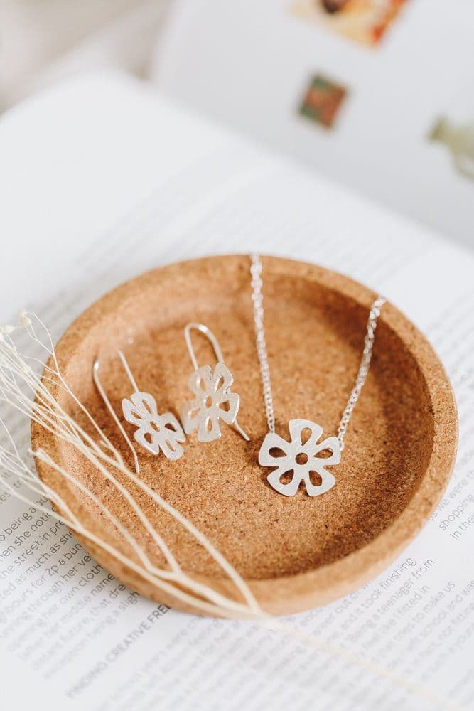 Matching daisy drop earrings by Joanne Tinley are available here.