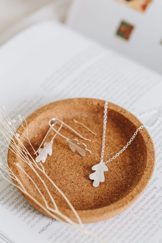 Matching oak leaf drop earrings by Joanne Tinley are available here.