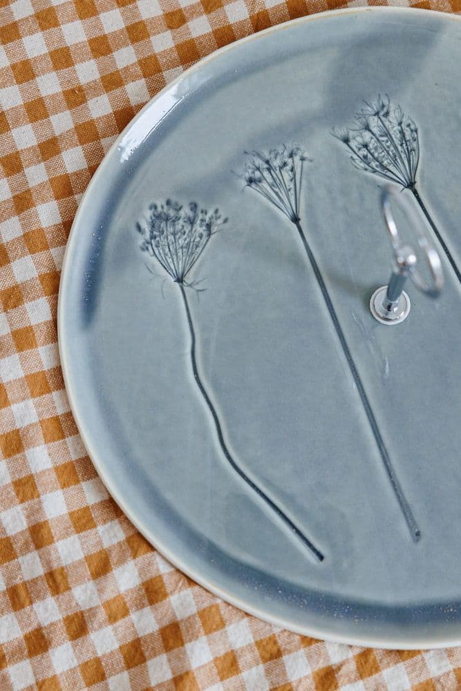 Created in the West of Ireland by Louise Browne, Living Ginger Designs ceramics have a contemporary feel with impressed floral or fabric details. This beautiful medium porcelain bowl has a botanical design highlighted with handmade dusty blue glaze on the inside. Please note that the designs may vary slightly as each one is made by hand.