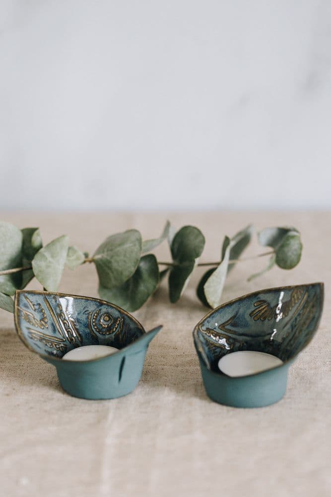 This beautiful tea light holder by Ruth Fairhead is hand built from slabs of clay and then imprinted with patterns using linocut. Designing her own patterns and cutting her own lino is an important part of Ruth's design process. Ruth uses glazes that enhance the ridges and troughs of the imprinted clay and this colourway is aptly named 'Storm'. Please note that these tea light holders are sold individually.